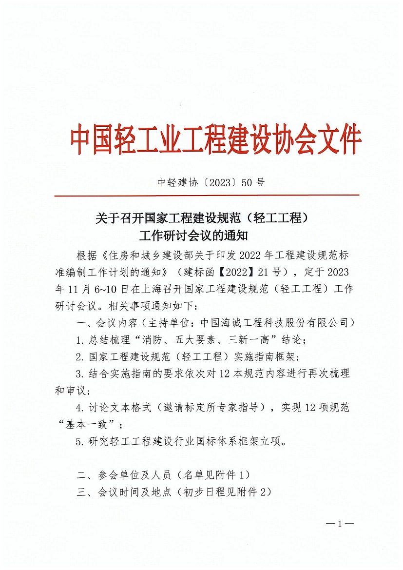 关于召开国家工程建设规范(轻工工程) 工作研讨会议的通知