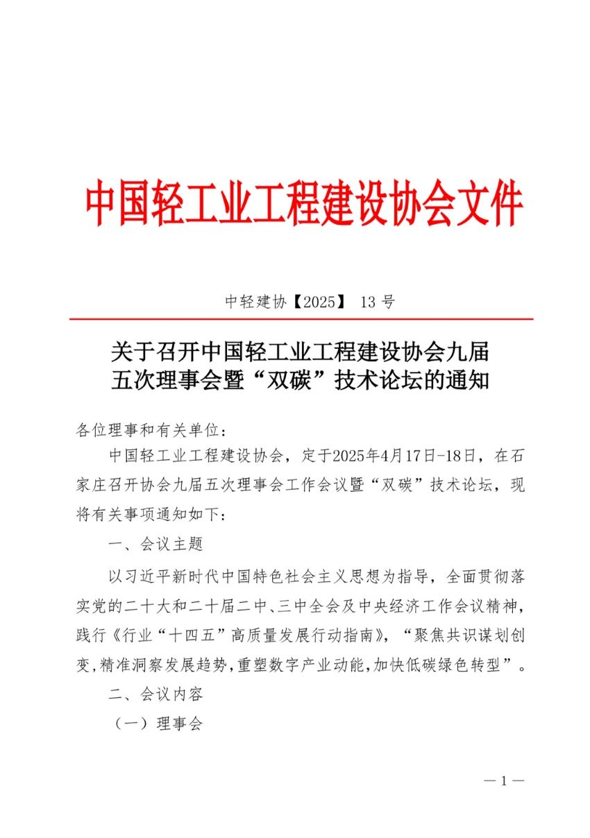 关于召开中国轻工业工程建设协会九届 五次理事会暨“双碳”技术论坛的通知