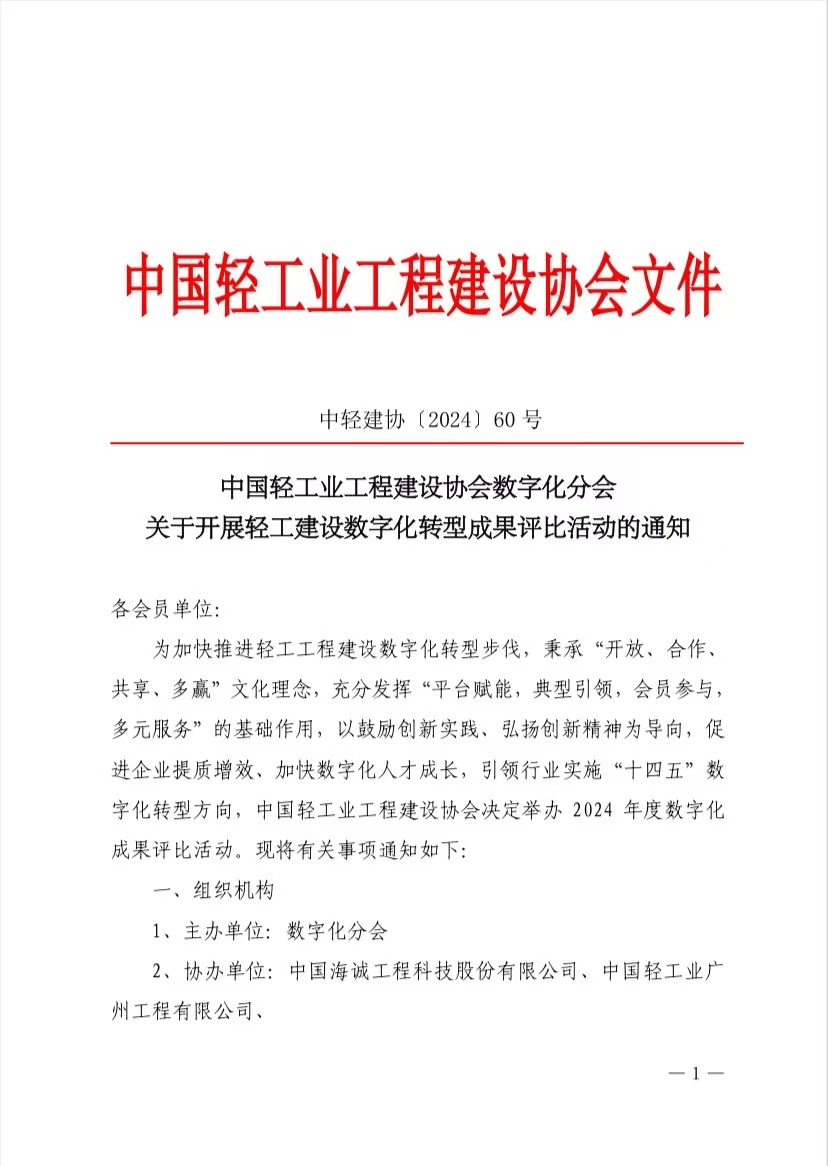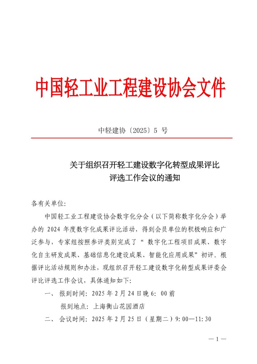 关于组织召开轻工建设数字化转型成果评比 评选工作会议的通知