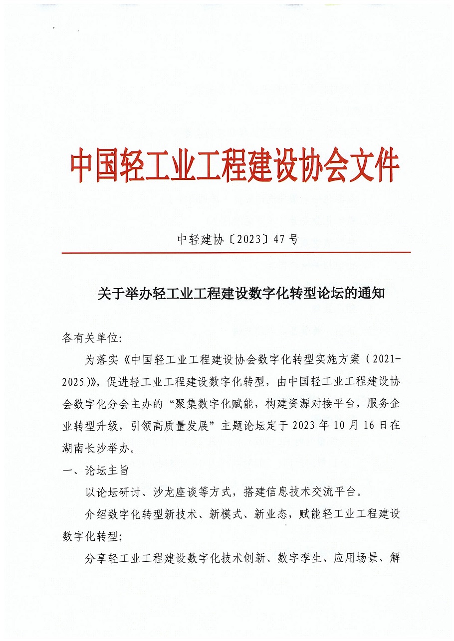 中国轻工业工程建设协会数字化分会 关于举办BIM成果评比活动的通知