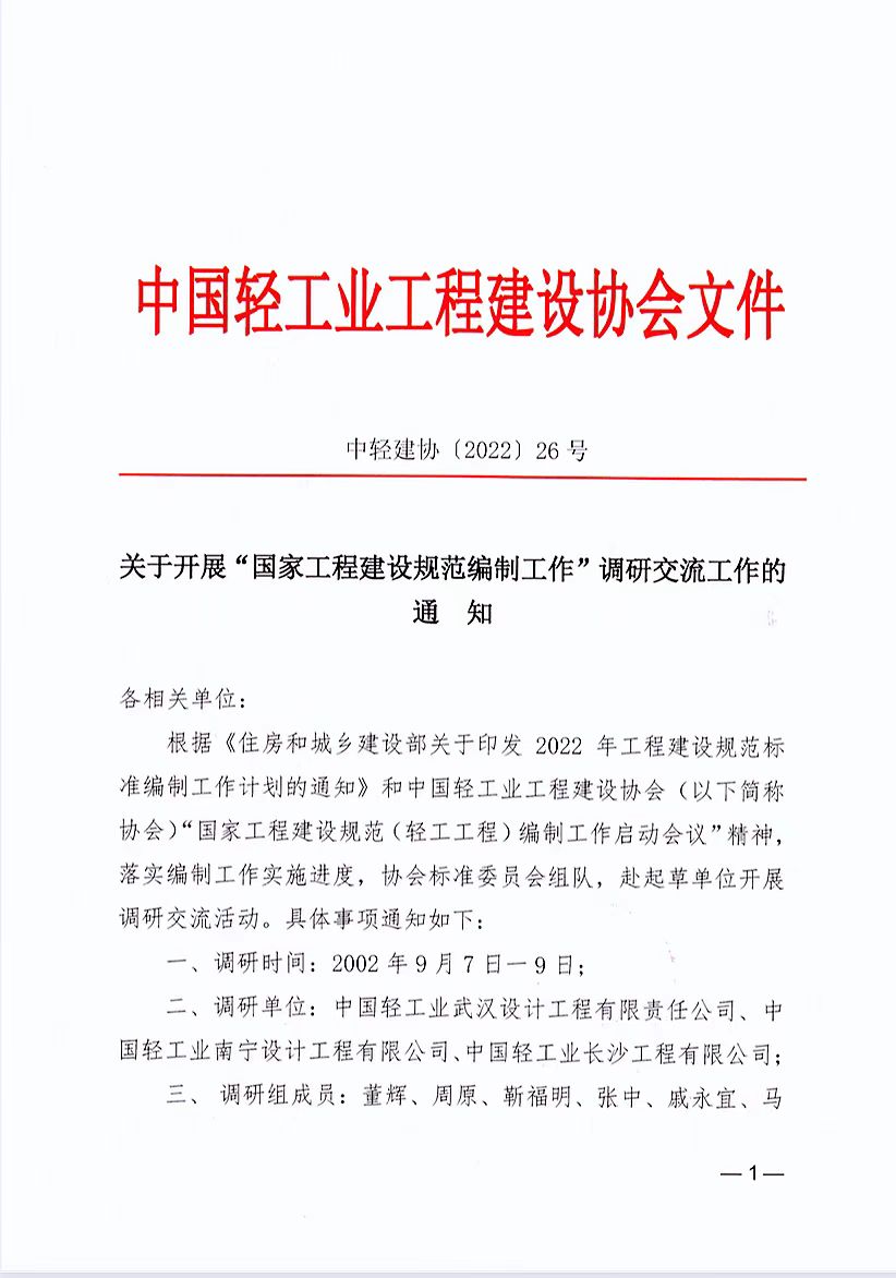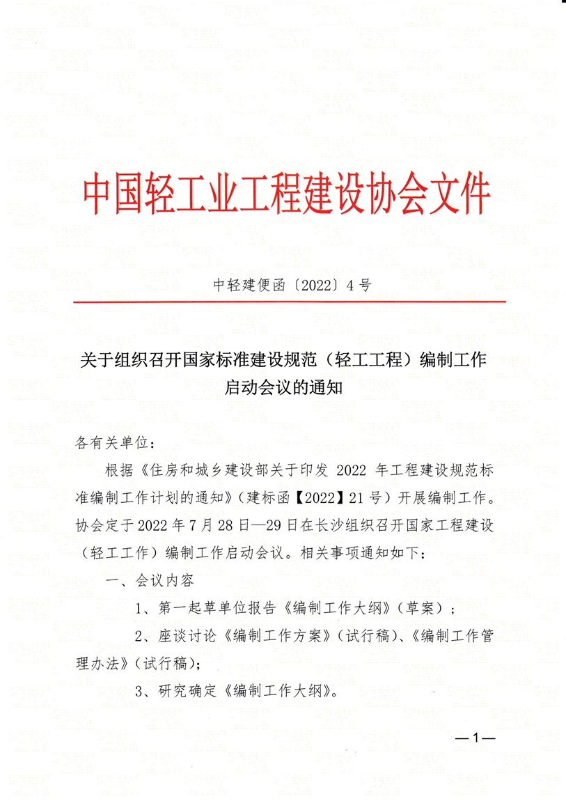 关于组织召开国家标准建设规范(轻工工程)编制工作启动会议的通知