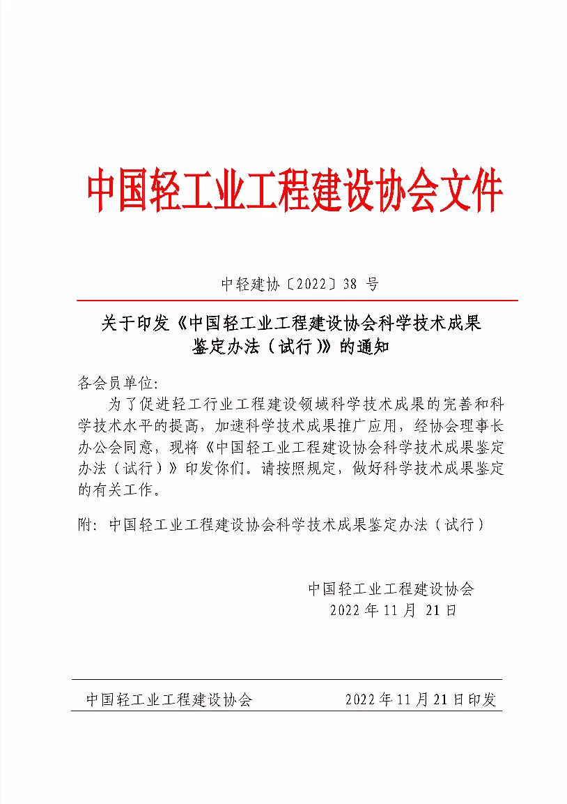 关于印发《中国轻工业工程建设协会科学技术成果 鉴定办法(试行)》的通知