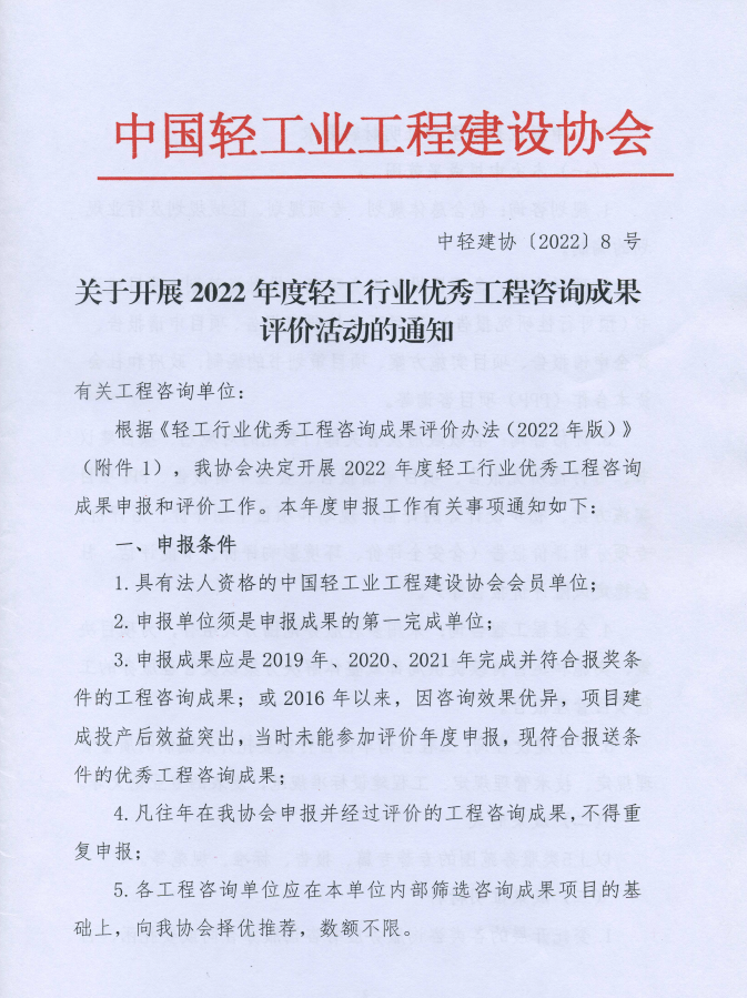 关于开展2022年度轻工行业优秀工程咨询成果评价活动的通知