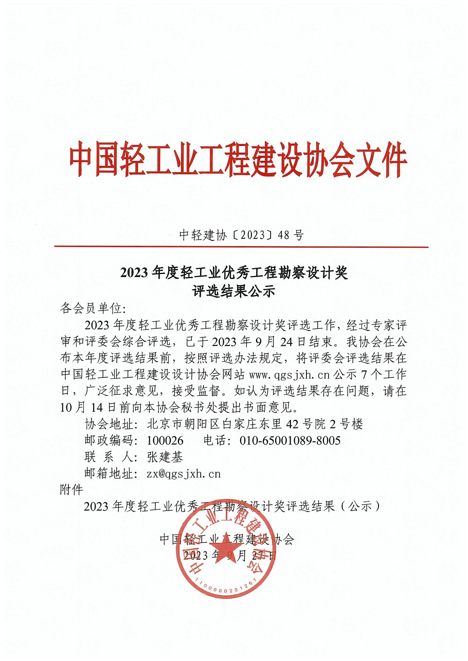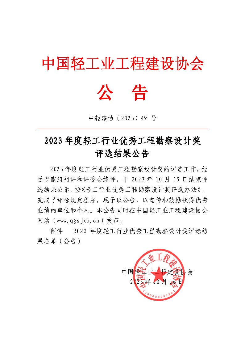 2023年度轻工行业优秀工程勘察设计奖 评选结果公告