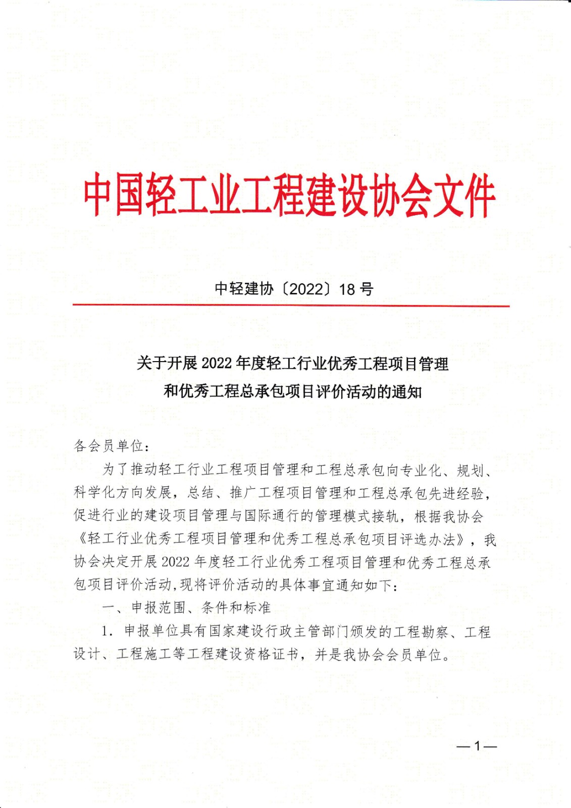 附件1:轻工行业优秀工程项目管理和优秀工程总承包项目评选办法(试行).doc
